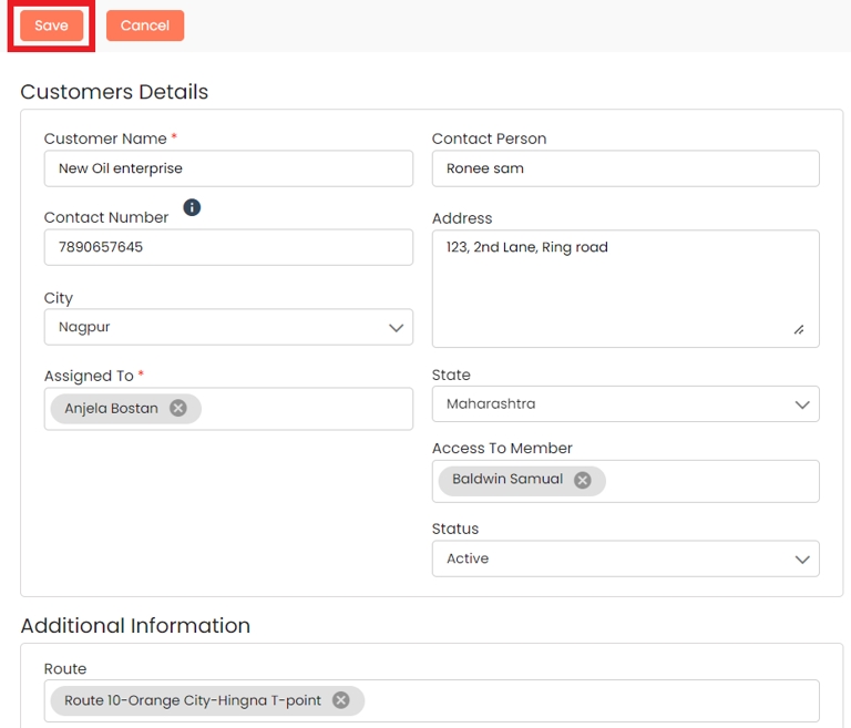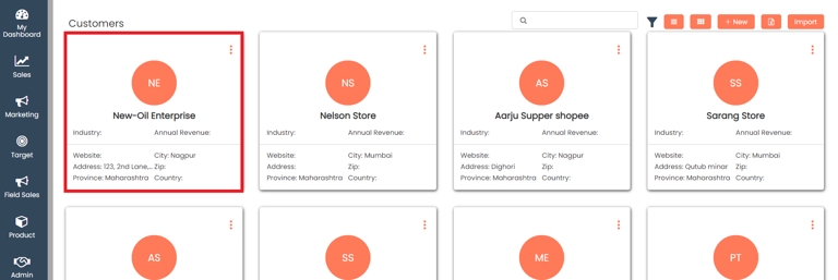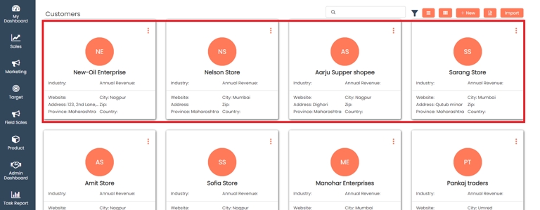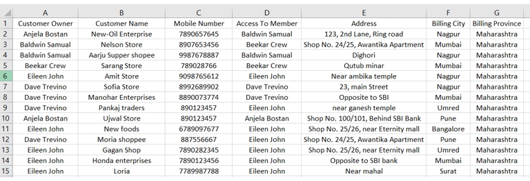 After uploading Customers in xlsx file format, you can see imported customers in the customer list